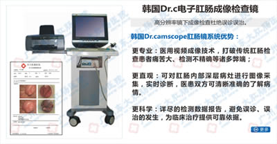 东大采用韩国电子肛肠镜针对肛门、直肠下段进行检查,将肠道内部的图像传输于计算机处理中心,显示于监视器屏幕上,医患双方都可以清晰的观察到放大数十倍后的病灶部位,其图像清晰、逼真,正确诊断率较高以上,避免了误诊、漏诊,是目前国际上肛肠病检查诊断的高端设备。